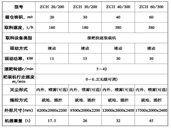 ZCH系列自動儲料分裝分運緩沖倉系統性能對比表: